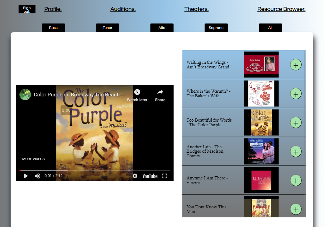As an actor, I always wanted a hub of sorts to be able to connect with theaters, auditions, and to save song ideas for auditions.